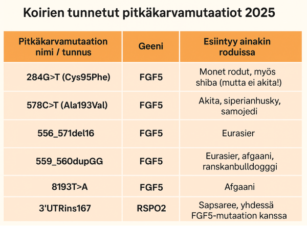 Maki ym. (2025): Genetic Variant of the Canine FGF5 Gene for the Hair Length Trait in the Akita: Utility for Hair Coat Variations and Welfare in Conservation Breeding. doi: 10.3390/genes16080927