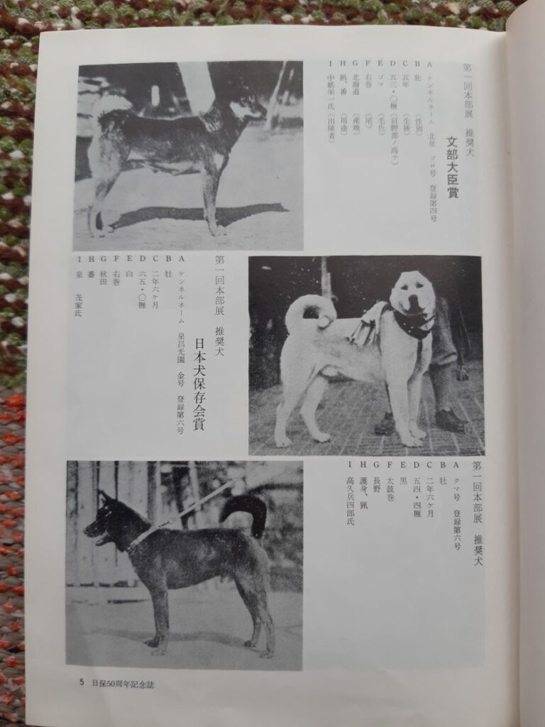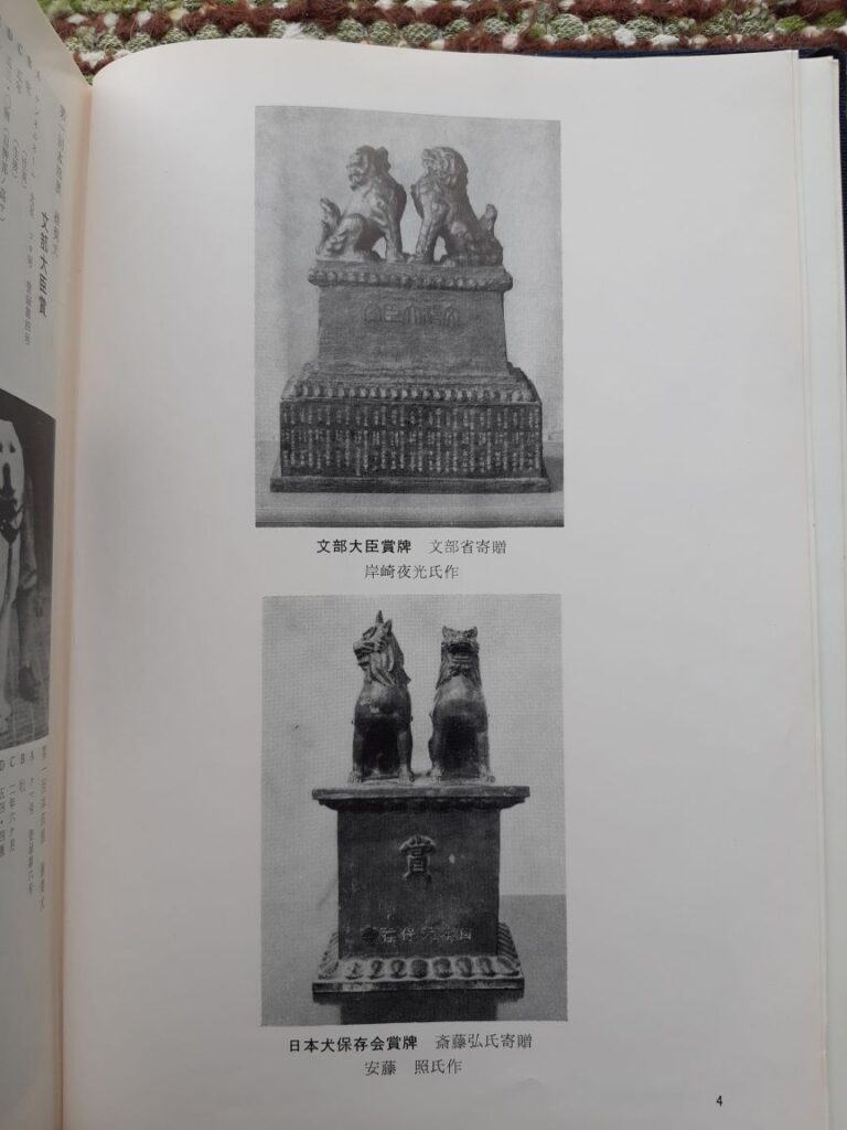 Mitääää, missä on ROP:it ja RYP:it ja BIS:it? NIPPO:n päänäyttelyn voittajia on hankala tulkita, jos odottaa länsimaisia termejä. Ensimmäisessä näyttelyssä palkittiin kaksi parasta. Voittajakoira sai Japanin Opetusministeriön lahjoittaman palkintopatsaan (ylempänä) ja toiseksi tullut NIPPO-palkintopatsaan. Tai eivät kirjaimellisesti saaneet niitä itselleen, mutta voittajien nimet kaiverrettiin patsaisiin. Ilmeisesti niitä säilytettiin NIPPO:n päämajassa, ja seuraavan vuoden voittajat ”saivat” ne aina uudestaan. Patsaat näyttävät tarkoituksella enemmän leijonilta kuin koirilta, koska ne on komainuja.
