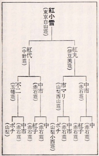 Jep, se on mun suosikkishiban Benimarun tytär Benikoyuki, kutsumanimeltään Koyuki. Se sai palkintoja sekä NIPPO:n että SHIBAHO:n näyttelyissä, ja sen verilinja jatkui SHIBAHO-shiboissa. Pointtina kuitenkin se, että sen isä Benimaru oli valkoisuuden kantaja. Benimarulla oli luultavasti satoja jälkeläisiä myös NIPPO-shboissa, ja geeniloton sääntöjen mukaisesti noin puolet niistä on perinyt siltä valkoisuuden geenin. Katson mysteerin suurelta osin ratkenneeksi. Valkoista kontribuutiota on voinut tulla muiltakin koirilta (mm. japaninpystykorvaristeytyksiltä näyttävät awashibat), mutta Benimaru oli varmuudella tärkeä jalostusuros ja vaikutti hyvin lähellä nykyshiban sukupuun alkua.